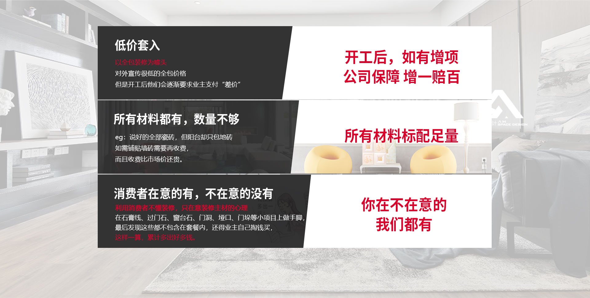 裝修項(xiàng)目包的不全,看似省錢,實(shí)際更花錢